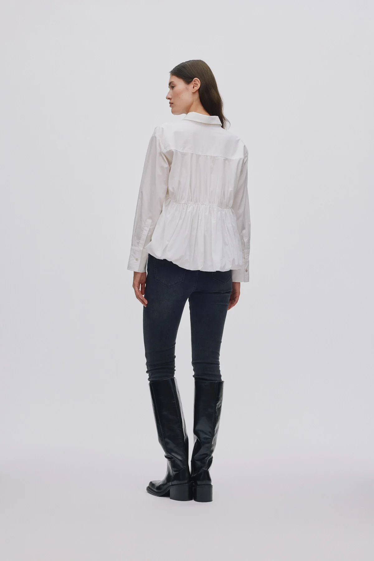 Sophie - Poplin puffed hem shirt I White